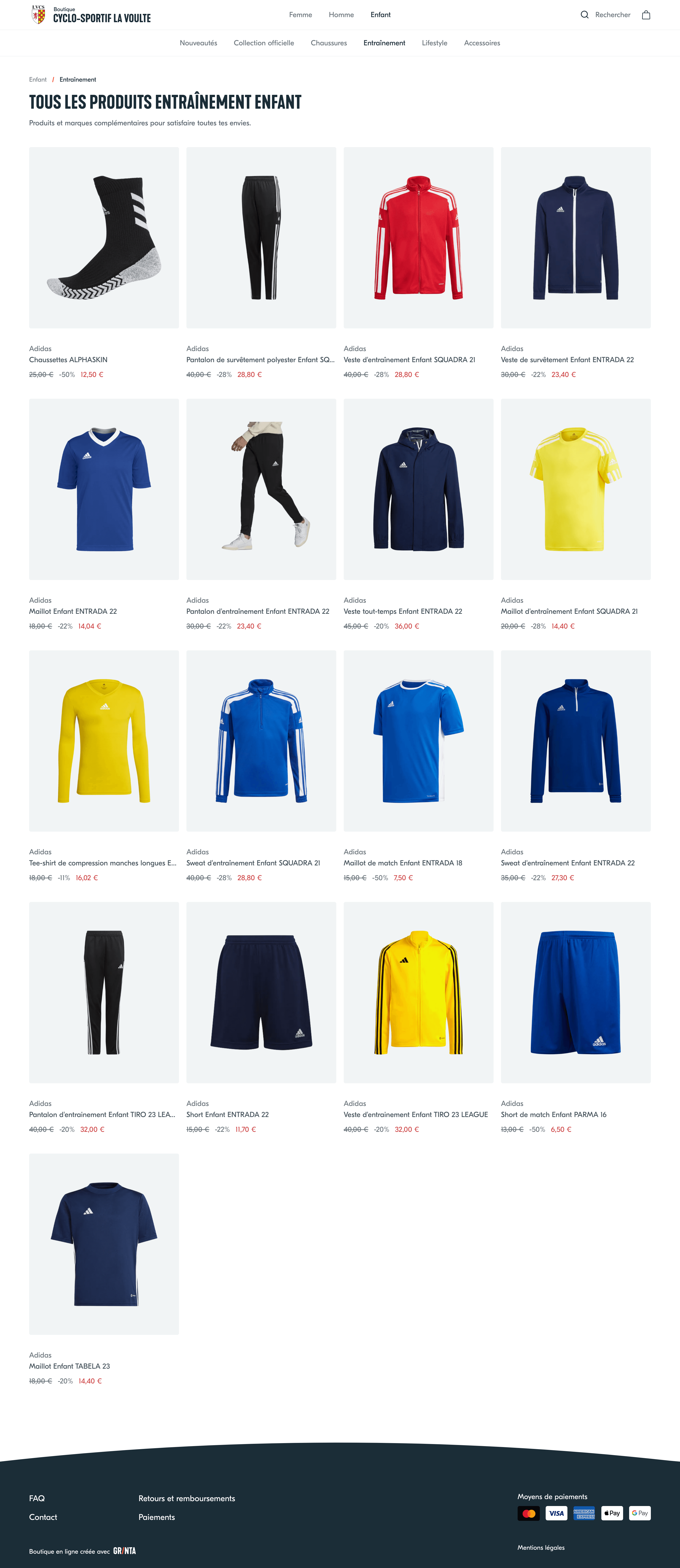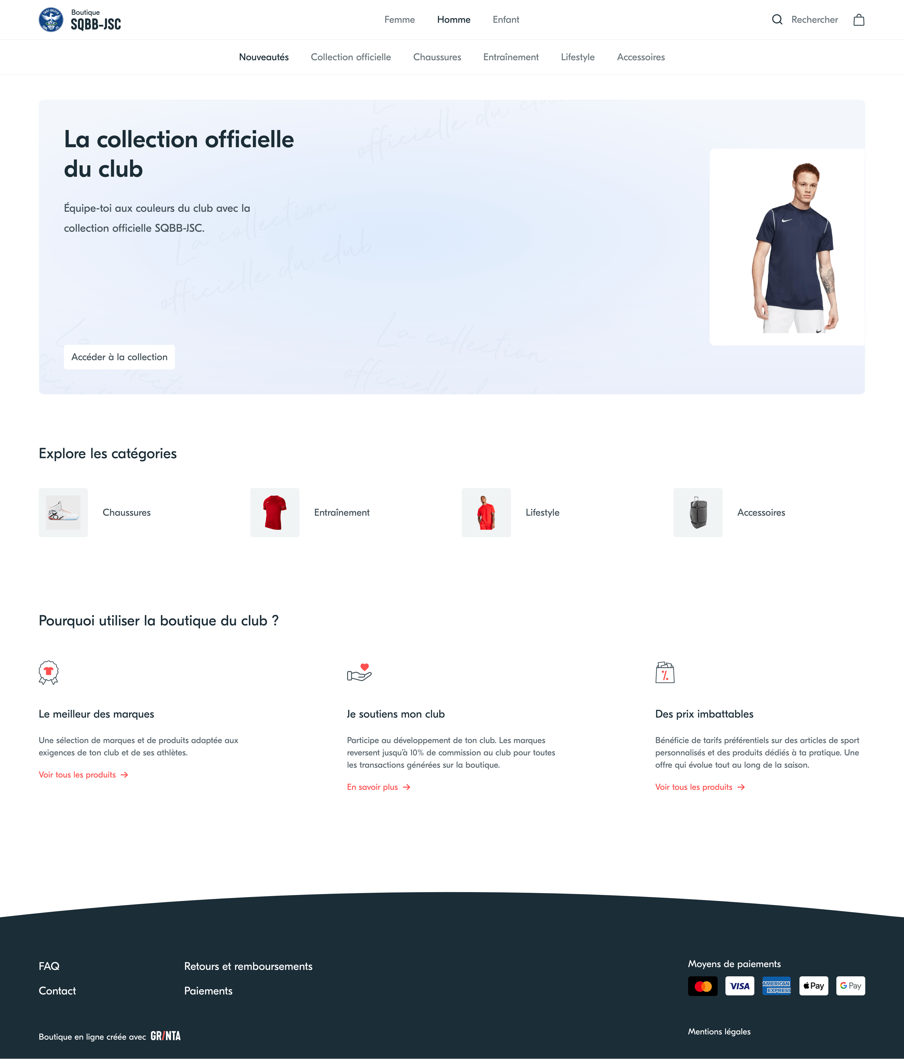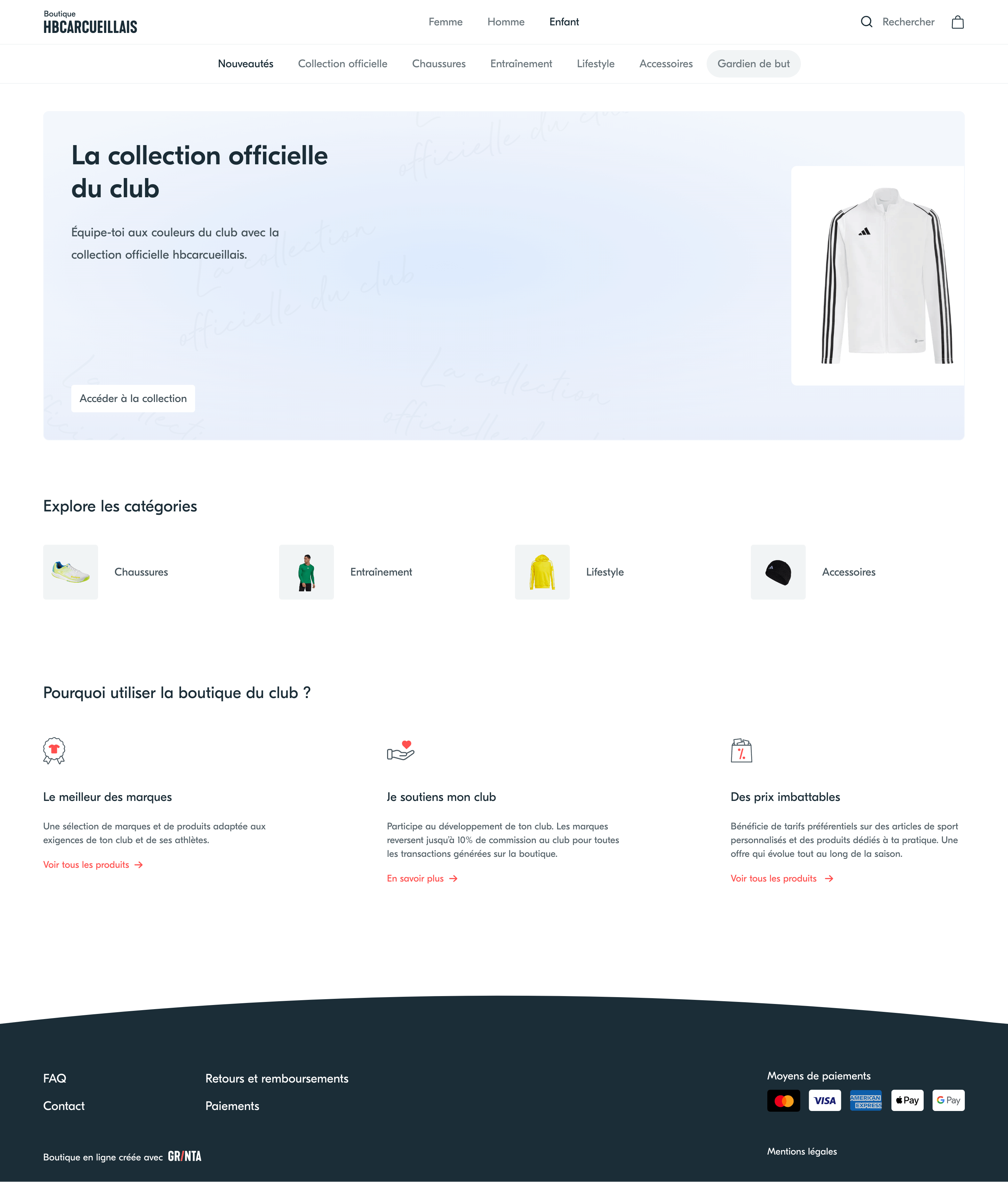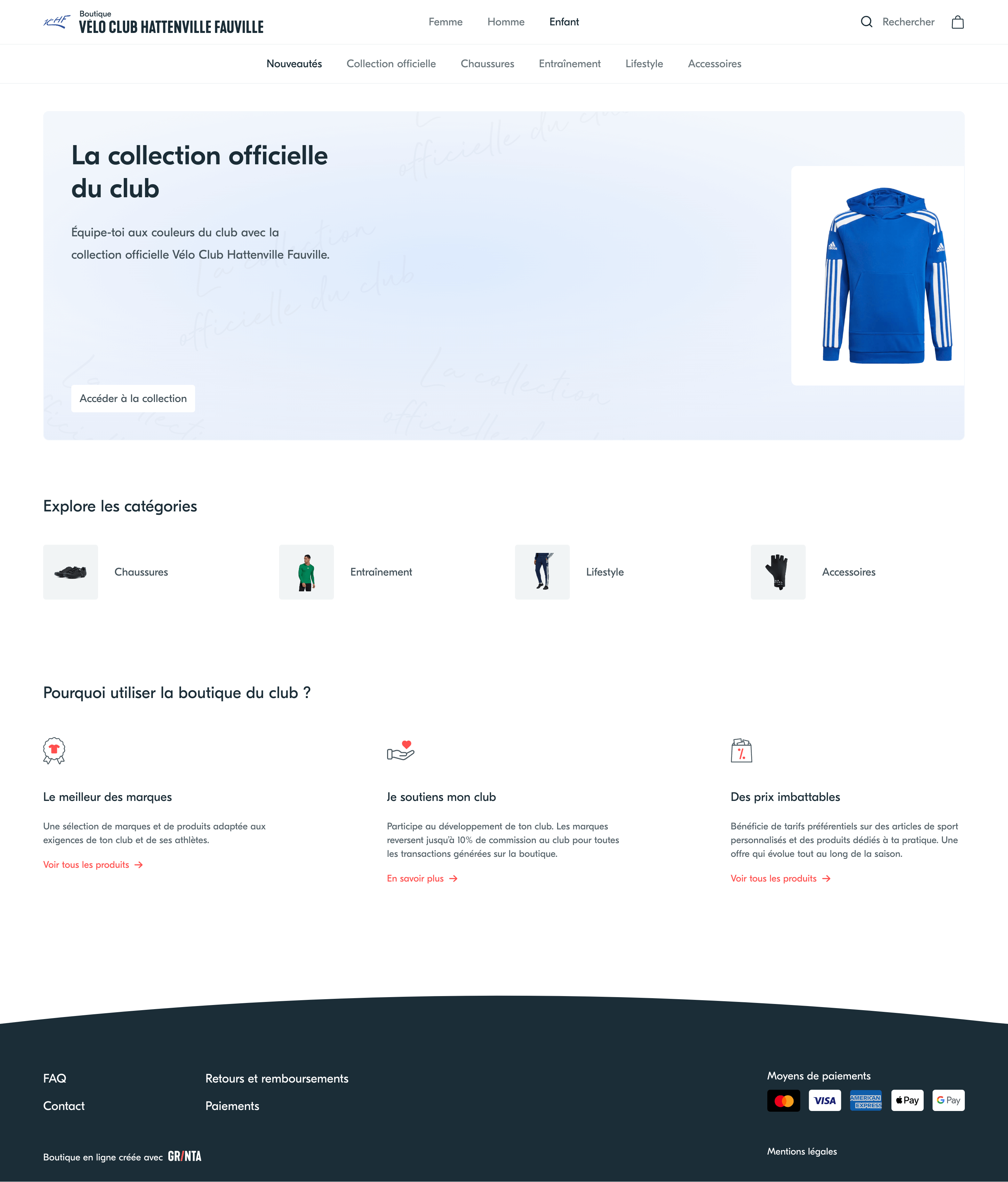 Grinta est la première solution spécialement conçue pour les équipementiers qui vendent aux clubs amateurs. Créez des boutiques en ligne à la volée pour vos clubs. Simplifiez la vente de packs de rentrée et de produits personnalisés. Captez les commandes individuelles des licenciés.